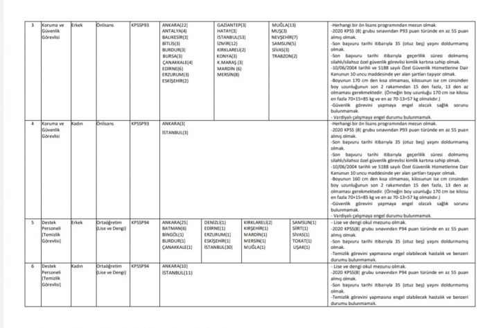 pozisyon sayısı kadar sözleşmeli personel alınacaktır. - İlan edilen her pozisyon için, pozisyon sayısının 3 katı kadar yedek aday belirlenecektir.