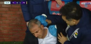 Trabzonspor Fenerbahçe maçında İsmail Kartal'a çirkin saldırı! Fred'in golüne sevinmek isterken tribünlerden yabancı madde atıldı... Trabzonspor-Fenerbahçe maçında skandal bir olay yaşandı. Sarı-lacivertlilerin gol attığı esnada İsmail Kartal'a su şişesi atıldı. Tecrübeli teknik adamın başına buz tedavisi uygulandı. Trabzonspor - Fenerbahçe maçının ilk yarısında skandal bir hadise meydana geldi. Sarı-lacivertlilerin teknik direktörü İsmail Kartal'a bordo-mavili taraftarlar tarafından su şişesi atıldı. HEMEN TEDAVİ YAPILDI Fred'in bulduğu gol sonrası yedek kulübesinden çıkarak gole sevinen İsmail Kartal'a tribünlerden yabancı bir madde atıldı. Gelen maddenin etkisiyle sarsılan İsmail Kartal'a buz tedavisi uygulandı.