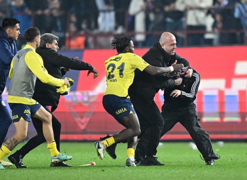 Trabzon'da Fenerbahçe maçı sonrası ortalık karıştı! Trabzonspor-Fenerbahçe maçının ardından ortalık karıştı. Fenerbahçeli oyuncular saha ortasında sevinirken taraftarların saldırısına uğradı. Süper Lig'in 30. haftasında oynanan Trabzonspor-Fenerbahçe maçının ardından ortalık savaş alanına döndü. Maç içinde zaman zaman gerilen ortam, sahaya atılan yabancı maddeler nedeniyle sıkça duran oyun ve yaralanmaların ardından olayların fitili maç biterken koptu. ORTALIK SAVAŞ ALANINA DÖNDÜ Galibiyetin ardından Fenerbahçeli futbolcular saha ortasında sevinç yumağı oluştururken tribünlerden büyük tepki gelmeye devam etti. Sarı-lacivertli futbolcular orta sahada sevinirken bazı taraftarlar sahaya girdi. Güvenlik görevlilerin müdahalede yetersiz kaldığı dakikalarda sahaya giren taraftarların sayısı arttı ve ortalık bir anda karıştı. Sahaya giren taraftarlar Fenerbahçeli futbolculara saldırdı. Oyuncular da çıkan arbedede sahaya giren kimliği belirsiz kişilerle yumruklaştı. Fenerbahçeli oyuncular yaşananların ardından kendilerini korumak için hızla soyunma odasına koşmaya çalıştı. Yaşanan görüntüler saniye saniye yayıncı kuruluşun ekranlarına yansıdı. Fenerbahçeli bazı futbolcular darp edildi.