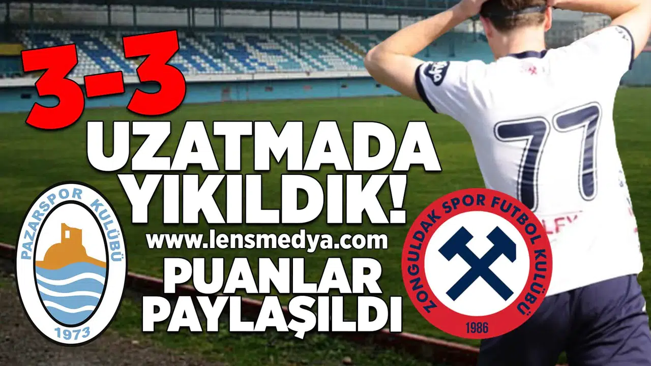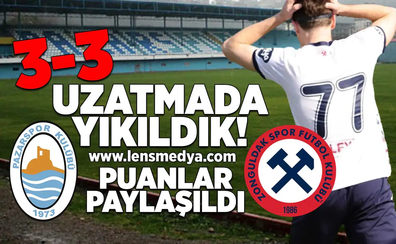Maçın uzatma dakikalarında ise adeta yürekler ağızlara geldi. 90+4. dakikada Pazarspor’da Mert Özyıldırım ceza sahası içinde bulduğu fırsatı gole çevirerek skoru 3-3’e getirdi. Bu gol, Zonguldakspor FK cephesinde büyük üzüntü yarattı.