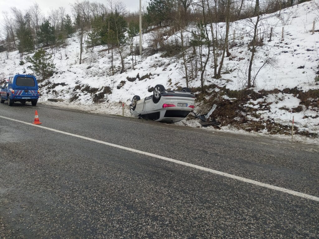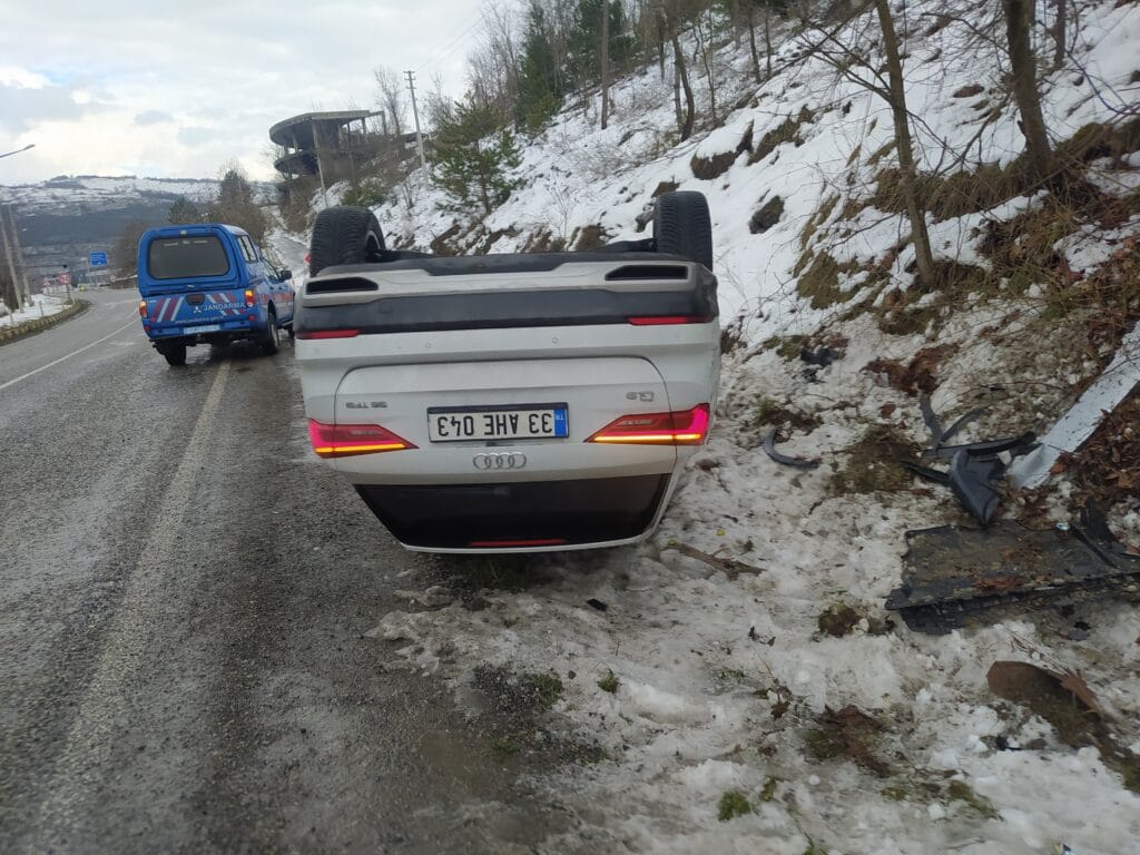 Edinilen bilgiye göre kaza, öğlen saatlerinde Gökçebey kavşağı Şahintepe mevkiinde meydana geldi. 33 AHE 043 Audi marka aracın sürücüsü direksiyon hakimiyetini kaybederek takla attı. Kazada sürücü araçtan yara almadan kurtuldu. Araçta ise maddi hasar meydana geldi.