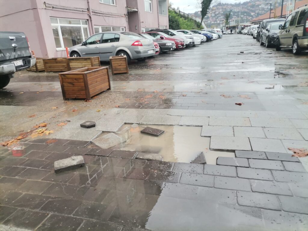 Yağan yağmur sonrası yolda yürümek imkansız hale gelirken, basılan her taşın altından su sıçraması Zonguldak Adliye Sarayı’na giden insanlara zor anlar yaşatıyor.
