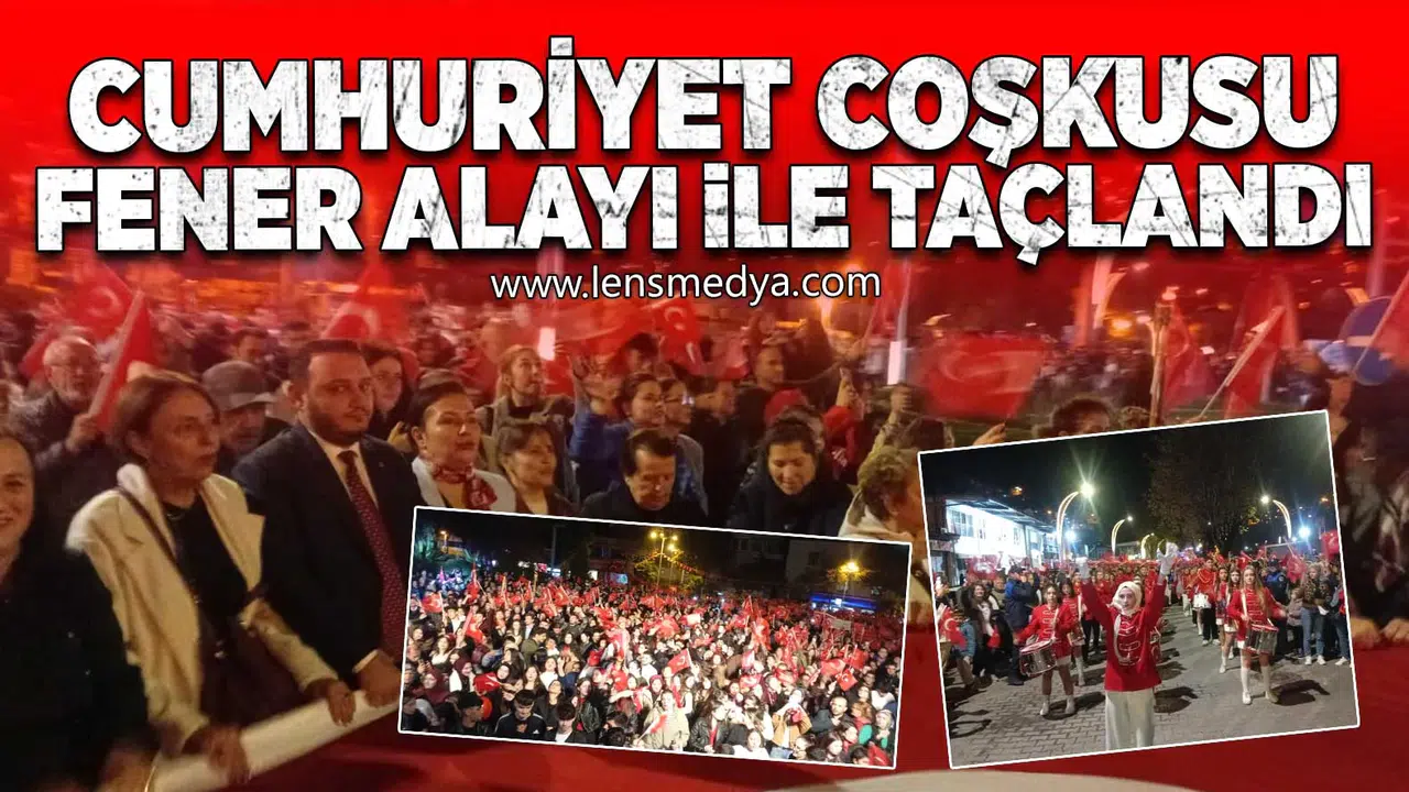 Cumhuriyet Bayramı kutlamaları kapsamında gerçekleştirilen Fener Alayı, akşam saatlerinde İstasyon Caddesi’nde başladı. Ellerinde meşaleler ve bayraklarla toplanan kalabalık, “Mustafa Kemal’in askerleriyiz”, “Yaşasın Cumhuriyet” ve “Ne mutlu Türküm diyene” sloganları eşliğinde Zonguldak Valiliği önüne kadar yürüdü.