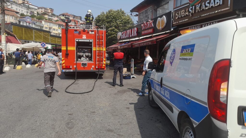 Pazaryeri girişindeki iki katlı bir binanın ikinci katından patlama sesi geldiğini ve dumanların yükseldiğini gören vatandaşlar, durumu 112 Acil Çağrı Merkezine bildirdi. İhbar üzerine, bildirilen adrese itfaiye, sağlık, elektrik ve doğalgaz ekipleri yönlendirildi. Elektrik hattının, aşırı yüklenmeden dolayı klimada yangına neden olduğu öğrenilirken; zaman zaman meydana gelen patlamalar ve yükselen alevler, iş yerlerinde bulunan ve pazaryerine giriş çıkış yapan vatandaşlar arasında panik ve kargaşaya neden oldu. Olay yerine kısa sürede intikal eden itfaiye ekibi, yangını büyümeden kontrol altına alarak söndürdü. Bu esnada bölgedeki elektrik ve doğalgaz kesildi, sağlık ekibi de hazır bekletildi. Yangından etkilenen olmaması üzerine 112 Acil Sağlık ekibi olay yerinden ayrılırken, yangını söndürdükten sonra bir süre soğutma çalışması yapan itfaiye ekibi de tutanak tuttuktan sonra olay yerinden ayrıldı. Elektrik ve doğalgaz ekipleri de yaptıkları çalışmanın ardından bölgeye yeniden hizmet vermeye başladılar.