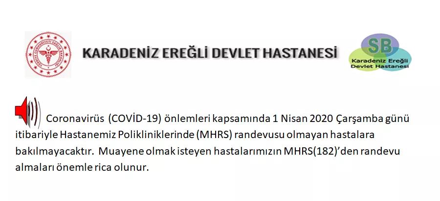 Kdz. Eregli Devlet Hastanesi corona virüs ile mücadele kapsamında yeni bir karar aldı.