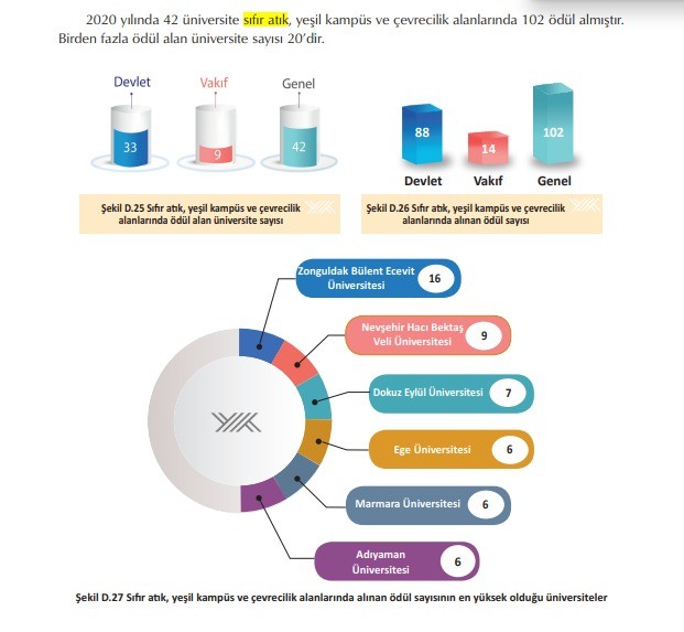 Cumhurbaşkanı Recep Tayyip Erdoğan'ın eşi Emine Erdoğan’ın inisiyatifiyle ülke genelinde başlatılan ve Zonguldak Bülent Ecevit Üniversitesi’nin öncelikleri arasında yer alan sıfır atık, yeşil kampüs ve çevrecilik alanında alınan ödül sayısına göre Yüksek Öğretim Kurulu’nun (YÖK) 2021 yılı Üniversite İzleme ve Değerlendirme Raporunda Zonguldak Bülent Ecevit Üniversitesi birinci olarak yer aldı.