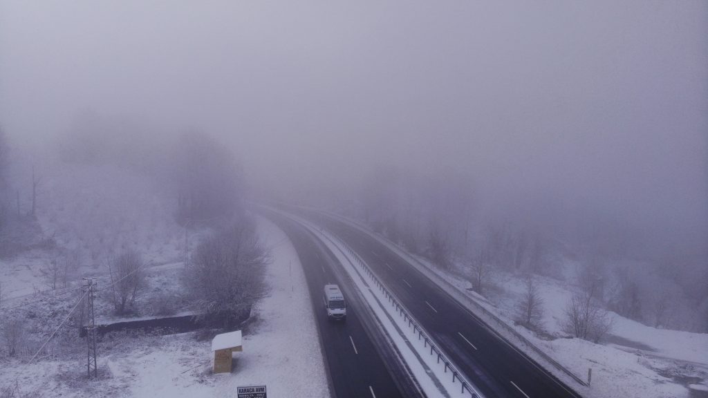 Meteoroloji Genel Müdürlüğü'nün Batı Karadeniz'de yoğun kar yağışı uyarılarında bulunmasının ardından Zonguldak'ta gece saatlerinde başlayan kar yağışı sabah saatlerinde de etkisini sürdürdü. Zonguldak-İstanbul karayolu Kandilli kavşağında yoğun kar yağışı nedeniyle sürücüler dikkatli seyir etti. Karayolları Genel Müdürlüğü'ne ait tuzlama ve kar küreme araçları da bölgede çalışmalarını sürdürdü. Karla birlikte yaşanan sis drone ile havadan da görüntülendi.