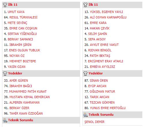 İşte ilk 11'ler;
