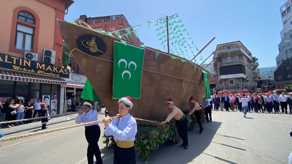 Zonguldak’ta düzenlenen İstanbul'un fethinin 569. yıl dönümü etkinliklerinde 10 metre uzunluğundaki gemi karadan yürütüldü.
