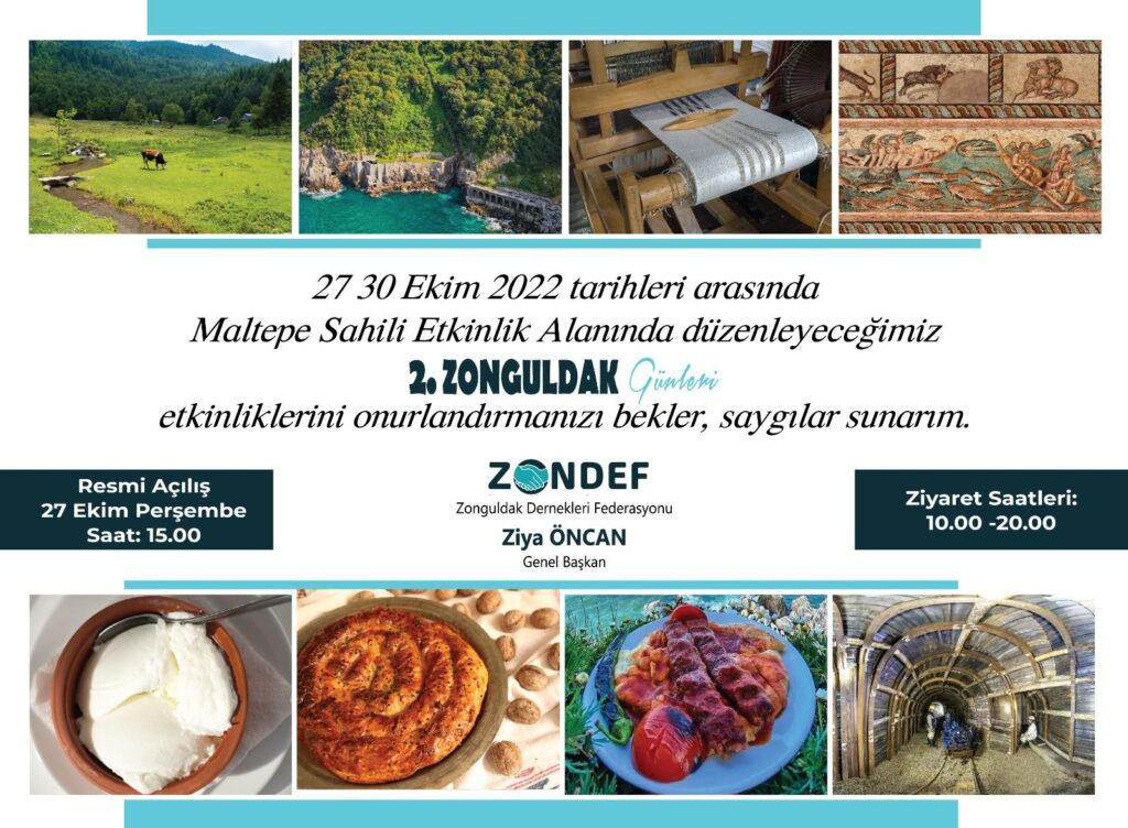 Zonguldak Dernekleri Federasyonu’nun (ZONDEF) ev sahipliğinde 27-30 Ekim 2022 tarihleri arasında İstanbul/Maltepe Sahili Etkinlik Alanında 2. Zonguldak Günleri etkinliği gerçekleştirilecek.
