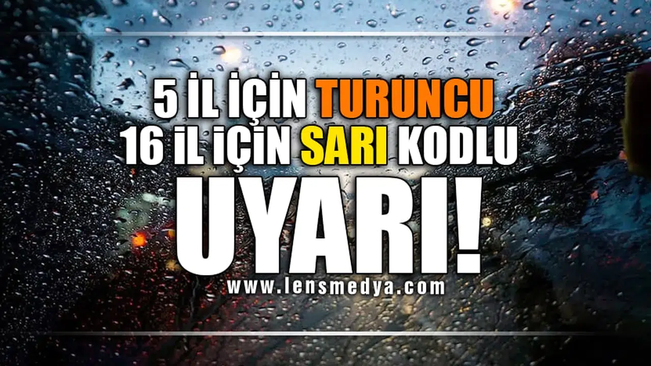 5 İL İÇİN TURUNCU, 16 İL İÇİN SARI KODLU UYARI