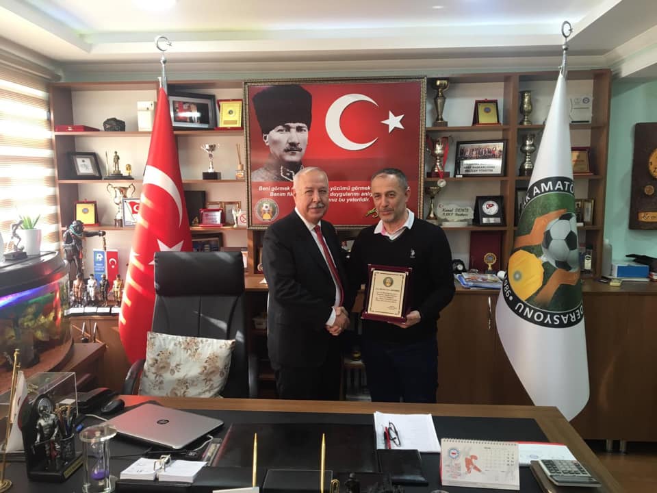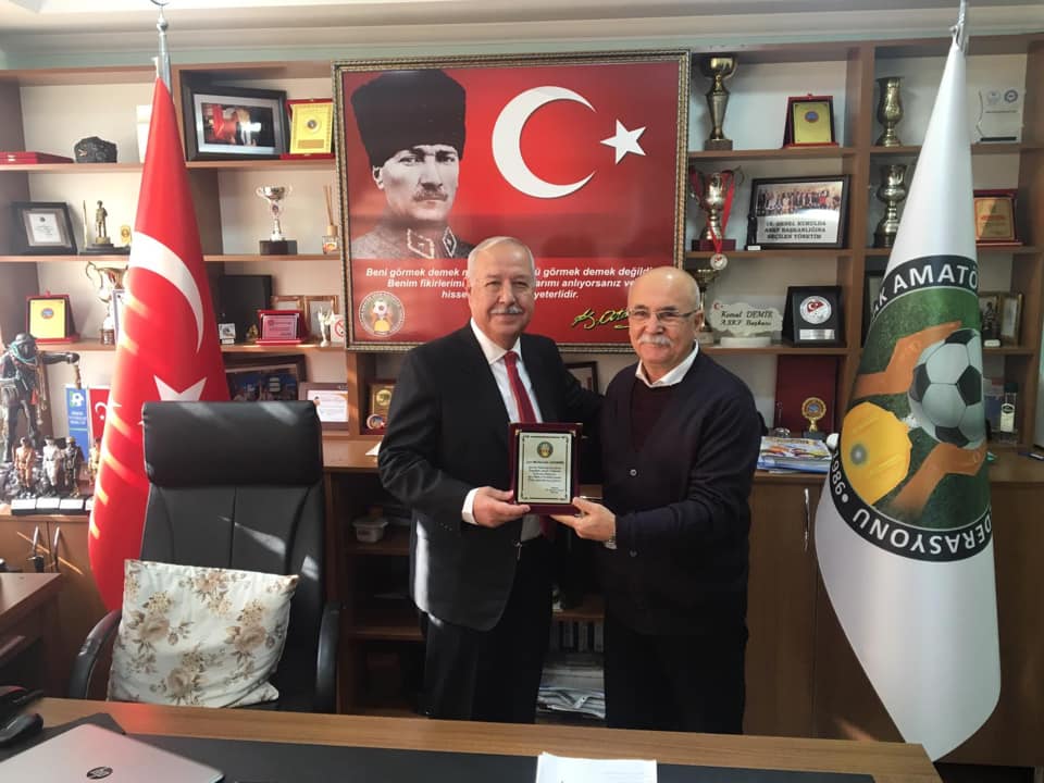 Futbol İl Temsilcisi Metin Malkoç ve Saha Komiserleri Derneği Başkanı Bülent Tuna'nın da yer aldığı ziyarette ASKF Yönetimi amatör spora vermiş olduğu katkılardan dolayı Başkan Akdemir’e teşekkür plaketi takdim etti.