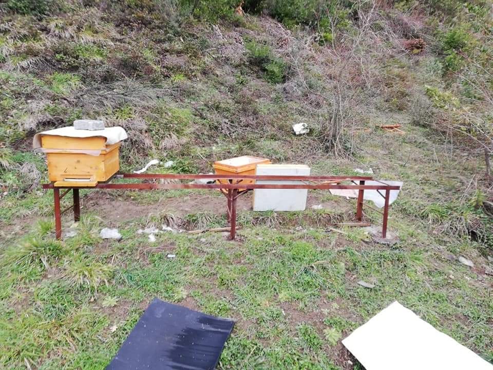 Zonguldak'ta Çağlı köyünde Sezai Cin'e ait arı kovanlarına ayılar saldırdı.