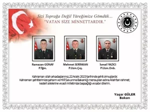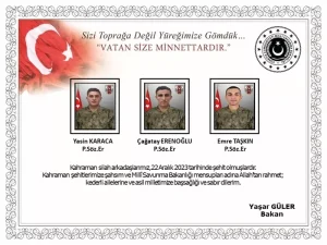 Milli Savunma Bakanlığı, Irak’ın kuzeyinde terör örgütü mensupları tarafından yapılan saldırıda 3 askerin şehit olduğunu, 4 askerin de yaralandığını duyurdu. MSB tarafından yapılan açıklamada Irak’ın kuzeyinde 3 asker şehit olurken, 4 askerimiz de yaralandı. İlk belirlemelere göre 4 teröristin de etkisiz hale getirildiği belirtildi. MSB'den yapılan açıklamada şu ifadeler kullanıldı: "Irak’ın Kuzeyi’nde 22 Aralık 2023 tarihinde bölücü terör örgütü mensupları tarafından yapılan saldırı ve akabinde sağlanan temasta 3 kahraman silah arkadaşımız şehit olmuş, 4 kahraman silah arkadaşımız yaralanmıştır. Bölgede bölücü terör örgütüne yönelik operasyonlar kapsamında temas devam etmektedir. Belirlenen hedeflere ve teröristlerin kaçış istikametlerine ani hava harekatları düzenlenmiştir. İlk belirlemelere göre 4 terörist etkisiz hale getirilmiştir. Bizleri derin bir acı ve üzüntüye boğan bu olayda, hayatını kaybeden aziz şehitlerimize Allah’tan rahmet, kederli ailesine, Türk Silahlı Kuvvetleri ile asil milletimize başsağlığı ve sabır, yaralı personelimize de acil şifalar dileriz."