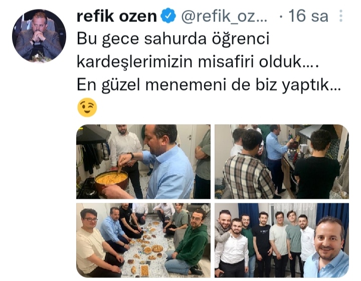 Ak Parti Bursa Milletvekilleri, Zafer Işık, Refik Özen, Ahmet Kılıç, Emine Yavuz Gözgeç, Mustafa Esgin, Hakan Çavuşoğlu, sahur vakti konuk oldukları öğrenci evlerinde, menemen pişirdi. Milletvekilleri, menemen pişirdiği anları da sosyal medyadan paylaştı.
