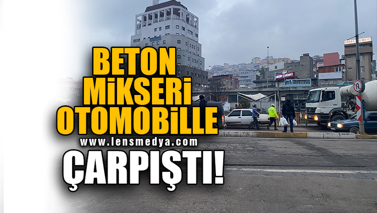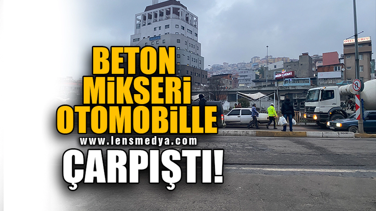 Zonguldak’ta Fevkani köprü altında sürücünün kontrolünden çıkan beton mikseri, otomobile çarptı.