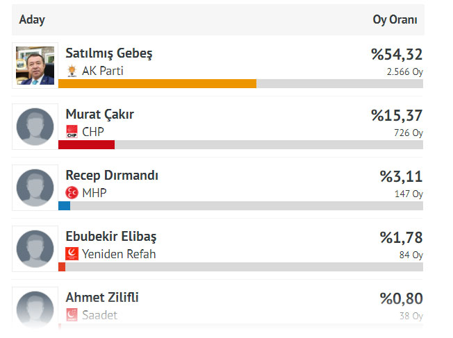 Çaydeğirmeni Belediye Başkanlığı için AK Parti’den mevcut Belediye Başkanı Satılmış Gebeş, CHP’den Murat Çakır, MHP’den Recep Dırmandı, Yeniden Refah Partisi’nden Ebubekir Elibaş, Saadet Partisi’nden Ahmet Zilifli yarıştı. Yapılan seçimlerde AK Parti'den 2004-2009 ve 2014 yıllarında, 31 Mart 2019'da yapılan seçimlerde rekor oy alarak yeniden seçilen Satılmış Gebeş, 5. Dönem Belediye başkanlığını kazandı.