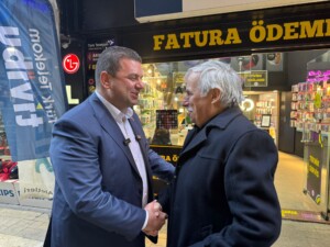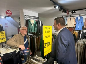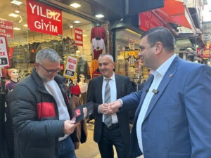 Saadet Partisi Belediye Başkan Adayı Cem Dereli’nin esnaf ziyaretlerinin şimdi ki durağı Toptancılar sokağı oldu. Saadet Partisi Merkez İlçe Başkanı İsmail Üstünyer ve Saadet Partisi Belediye Başkan Adayı Cem Dereli, Toptancılar sokağında esnaflarla biraya geldi. Saadet Partisi Belediye Başkan Adayı Cem Dereli, “ Esnaf ziyaretlerimize devam ediyoruz. Bugün sizlerle biradayız. Artık birşeylerin değişmesi gerek. Bunun için yola çıktık. Güzel projelerimiz var. Göreve geldiğim takdirde bu değişimi göreceksiniz. Gelin hep beraber bu değişimi birlikte başlatalım”dedi. Esnaflar ise Başkan Adayı Dereli’ye ziyaretleri için teşekkür ederek çalışmalarında başarılar diledi.