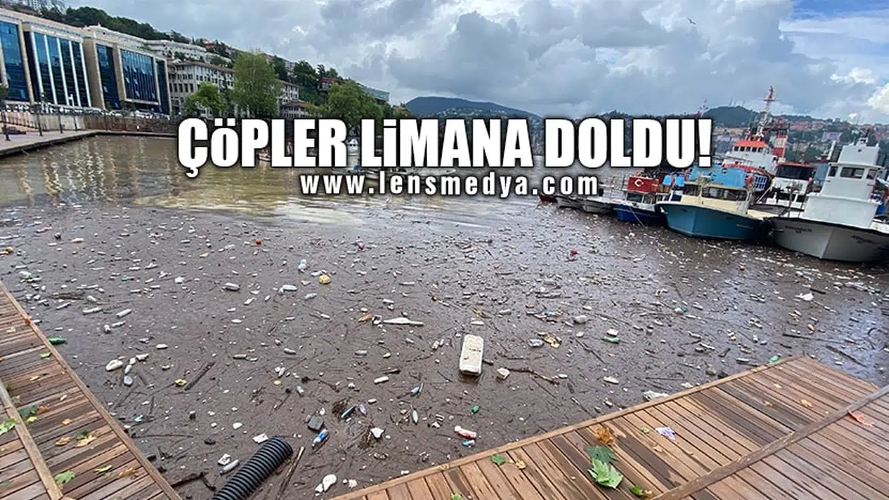 Kırmızı alarmın verildiği Zonguldak’ta, günün aydınlanmasıyla birlikte derelerden akan yüzlerce çöp limanda toplandı.