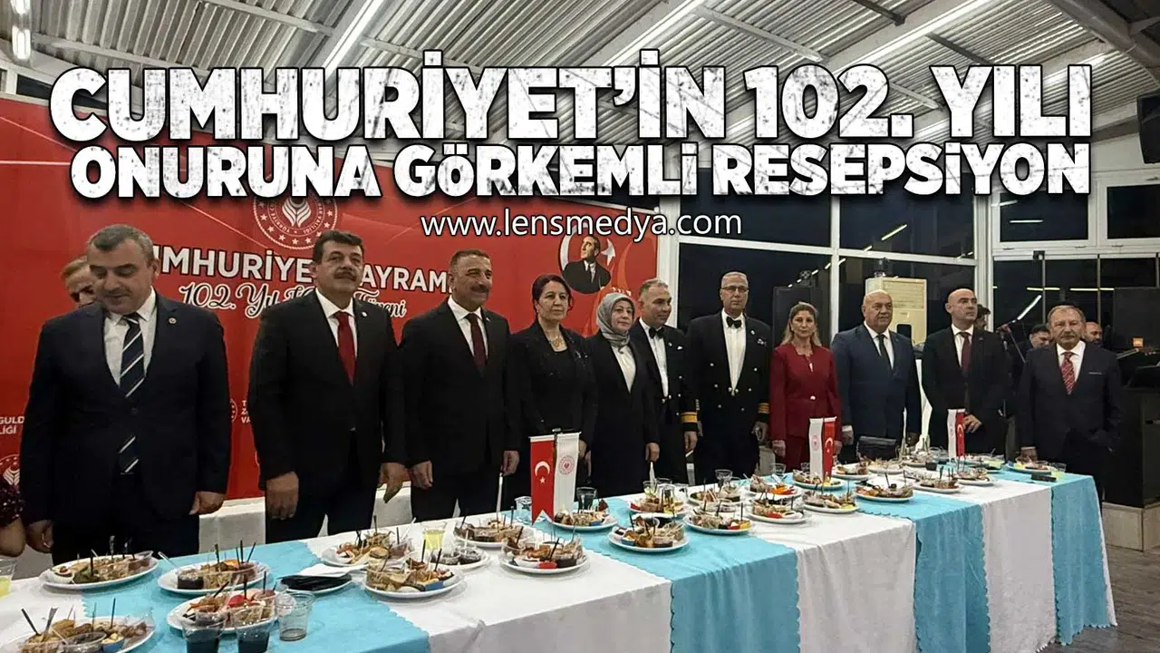 Resepsiyonda kısa bir konuşma yapan Zonguldak Valisi Osman Hacıbektaşoğlu, Cumhuriyet’in kuruluşunun 102’nci yıl dönümünde bir arada olmaktan büyük mutluluk duyduğunu belirtti. Hacıbektaşoğlu konuşmasında, “Cumhuriyetimizin 102. yılında bu anlamlı günde hep birlikte olmaktan onur duyuyorum. Türkiye Cumhuriyeti kıyamete kadar yaşasın.” sözleriyle katılımcılara seslendi.