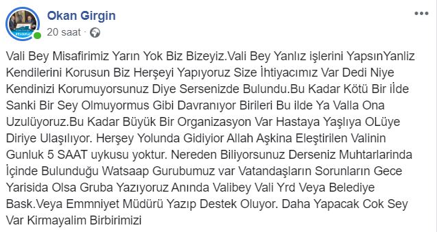 Konu ile ilgili Vali Bektaş’a desteklerini belirterek sosyal medya hesapları üzerinden paylaşım yapan vatandaşların tepkilerini görmezden gelen bazı basın kuruluşları sadece Vali Bektaş aleyhinde yazıları paylaşmaya devam ederken destek paylaşımları da hatrı sayılır sayıda artmaya devam ediyor.