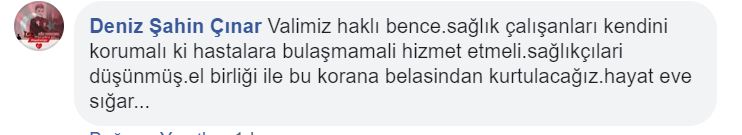 Konu ile ilgili Vali Erdoğan Bektaş’ın tüm sağlık çalışanlarını değil kendi aralarında izolasyon kurallarına uymayan sağlık çalışanlarını kast etmesine rağmen, ulusal basında ve kamuoyunda başlatılan linç kampanyasına da tepkiler gelmeye başladı.