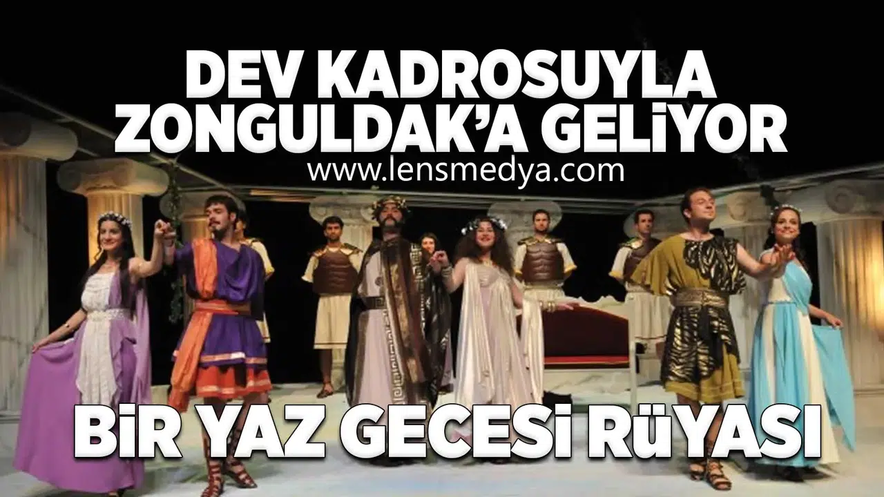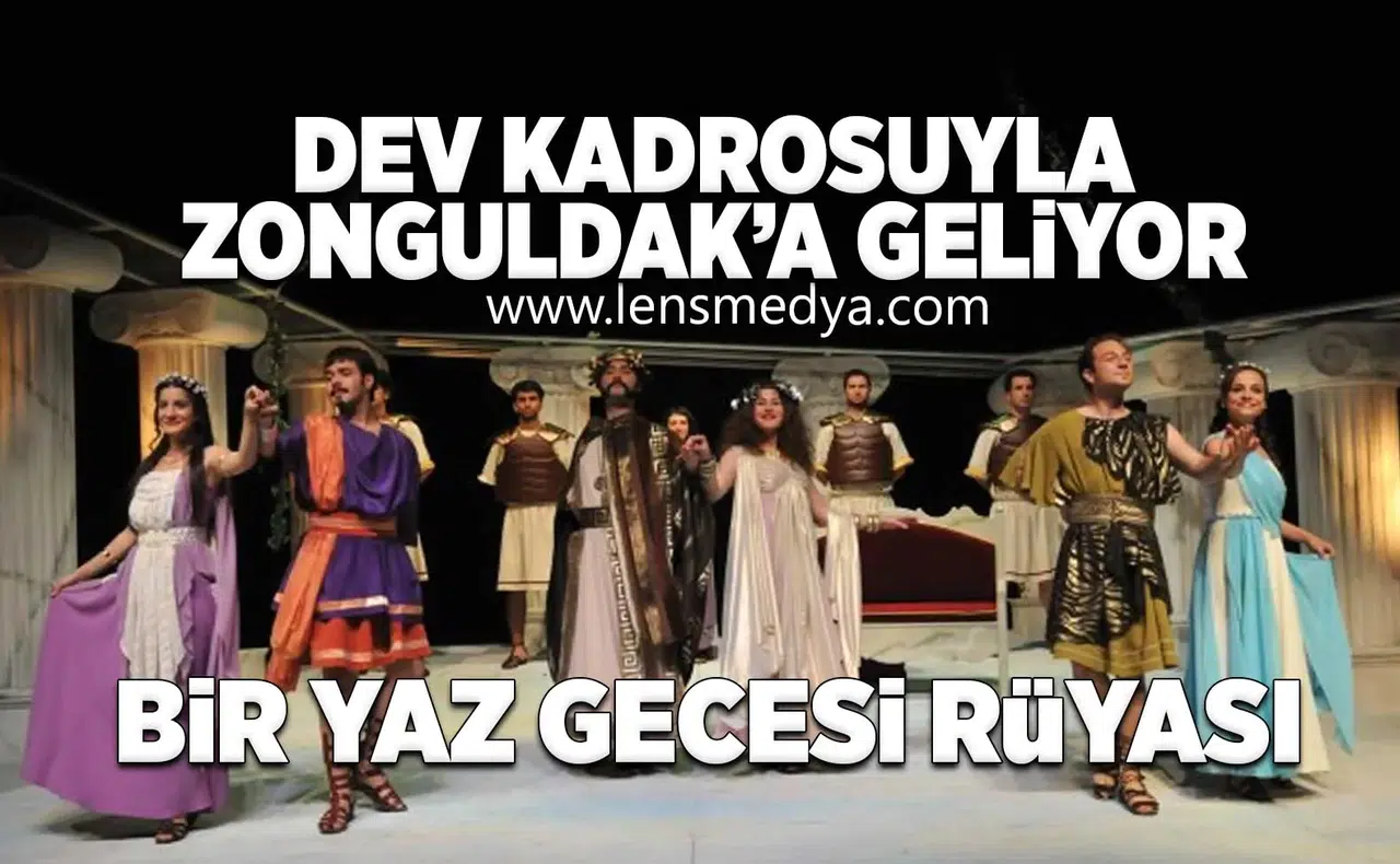 Bir Yaz Gecesi Rüyası, güçlü oyuncu kadrosu, müzikleri ve dinamik sahne performansıyla Zonguldak’ta tiyatroseverlere unutulmaz bir gece yaşatmaya hazırlanıyor.