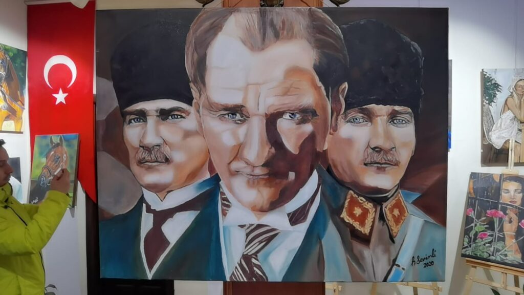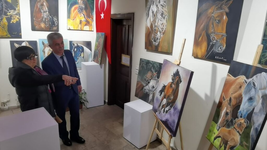 2010 yılından bu yana yağlı boya çalışmaları ile ilgilendiğini ifade eden Hayriye Sevimli, “Özellikle 2010 yılından itibaren, yoğunlaştım resme. 2018 yılında bir sergim oldu. Bu ikinci sergim. Ne kadar resim yaptınız dersiniz 250’nin üzerinde resim yaptım. Tabi ki benim işim bu. Evim stüdyo haline geldi. Daha çok at ve kadın üzerine yapıyorum. Çocukla başladım daha sonra atları sevdiğim için atları da resmettim. İsteyen alabilir” dedi.