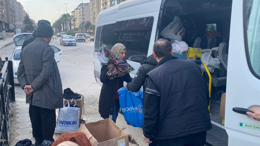 Toplanan koliler kamyonete yüklenerek Gazeteciler önderliğinde Hatay’ın Kırıkhan İlçesine getirildi.