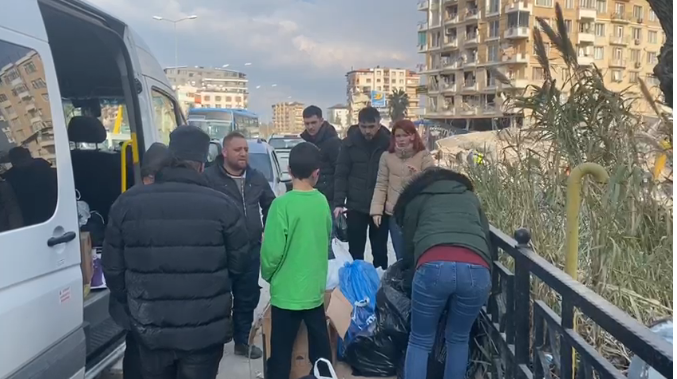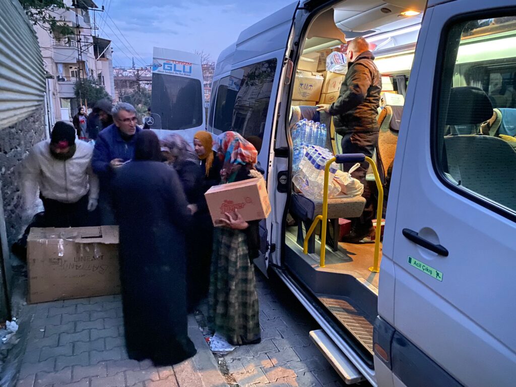 Gazeteciler Kırıkhan İlçesinde depremzedelere tek tek yardım kolilerini ulaştırdı.