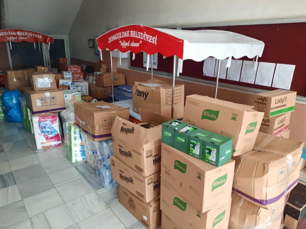 Karaelmas Gazeteciler Derneği öncülüğünde başlatılan “Bir şey yapmalı” projesi kapsamında depremzedeler için yardımlar dün itibariyle toplanmaya başlandı. Vatandaşların, iş insanlarının, belediye başkanlarının, parti temsilciliklerinin, muhtarların ve gazetecilerin yoğun ilgi gösterdiği kampanyada toplanan malzemeler bugün saat 23:00’te Karaelmas Gazeteciler Derneği (AKM) binası önünden Hatay’a ve Gaziantep’e Daloğlu Turizm aracılığıyla gönderilecek. Karaelmas Gazeteciler Derneği (KGD) üyesi gazeteciler de deprem bölgesine giderek yardım malzemelerinin dağıtımını gerçekleştirecek.Kampanyada organizasyona birebir katkıda bulunan gazetecilere, kampanyayı haber yapan gazeteci arkadaşlara, koordinasyon konusunda destek olan başta Sayın Zonguldak Valisi Mustafa Tutulmaz ile Sosyal Yardımlaşma ve Dayanışma Vakfı Müdürü Recep Civelek olmak üzere, araç desteği sağlayan Kozlu Belediye Başkanı Ali Bektaş’a, erzak desteğinde bulunan Devrek Belediye Başkanı Çetin Bozkurt’a, Çaydeğirmeni Belediye Başkanı Satılmış Gebeş’e, AK Parti Zonguldak İl Başkan Vekili Ömer Gülay’a, MHP Zonguldak İl Başkanı Mustafa Öztürk’e,CHP Zonguldak Kadın Kolları Başkanı Merve Kır’a, İş insanı Alaattin Kurnaz’a, İş insanı Nejdet Tıskaoğlu’na, İş insanı İsmail Ofluoğlu, İş insanı Vahdet Velioğlu’na, İş insanı Murat Uzun’a, İş insanı Murat Candaş’a, iş insanı Emre Acar’a,İş insanı Muammer Ketenci’ ye, AK Parti eski Ereğli İlçe Başkanı Fatih Çakır’a, Ömer Faruk Yıldız’a, Çafoğlu Ailesi’ne, Şenol Şanal’a, Nazif Çelik’e, Avcılar Giyim, Ferit Arslantürk,Harun Akın, Sabit Danış ve Yasin Gayret’e teşekkür ederiz.