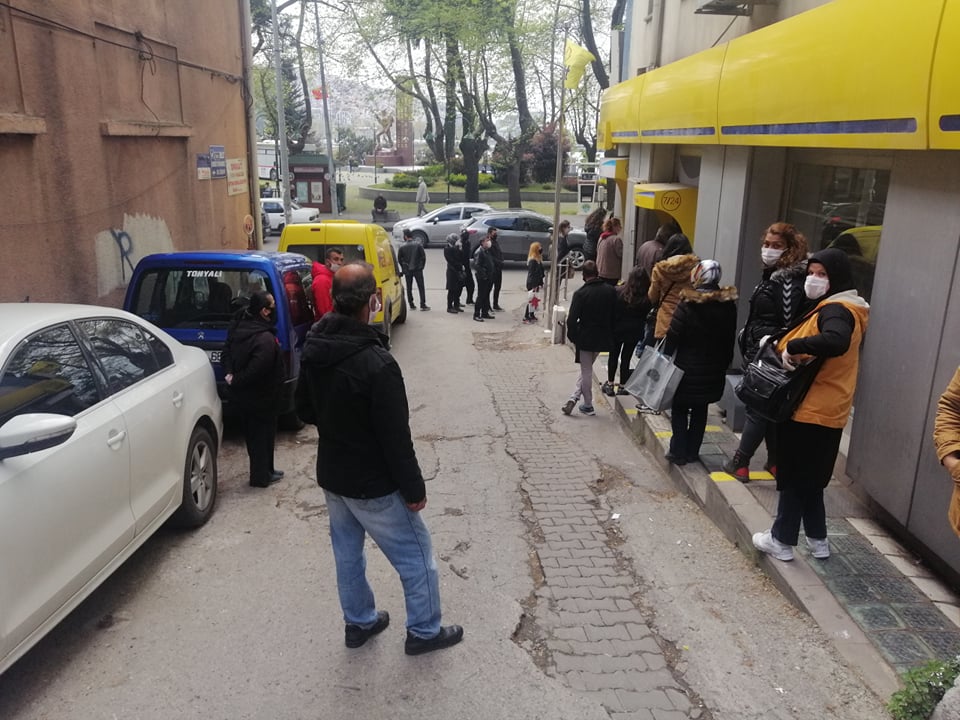 Zonguldak Gazipaşa Caddesi her zamanki gibi yine kalabalık bir şekilde görüntülenirken banka şubeleri önünde yine uzun kuyruklar oluştu.
