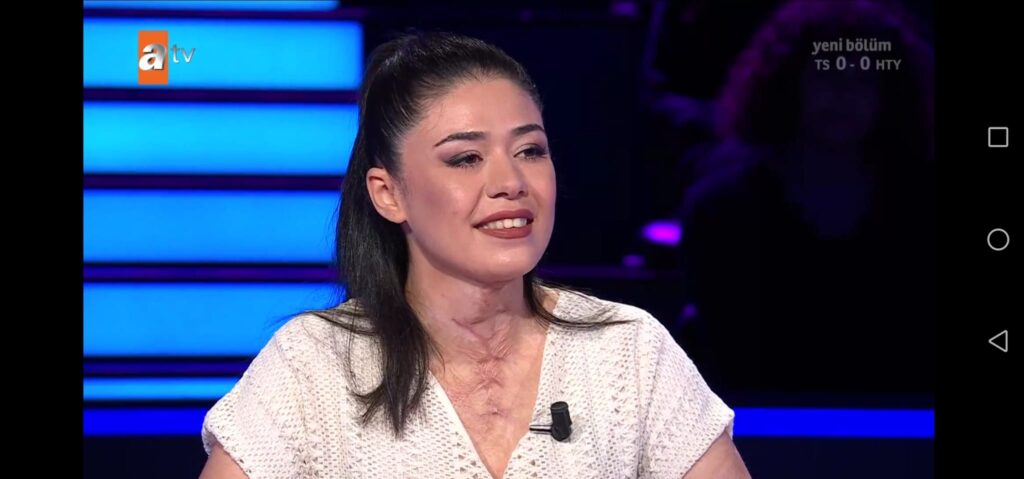 Bülent Ecevit Üniversitesi ve Araştırma Hastanesinin acil servisinde etil alkolün patlaması sonucunda ağır yaralanan hemşire Gizem Elif Türk, ATV’de yayınlanan ve Kenan İmirzalıoğlu’nun sunduğu “Kim Milyoner Olmak İster?“ programına yarışmacı olarak katıldı.