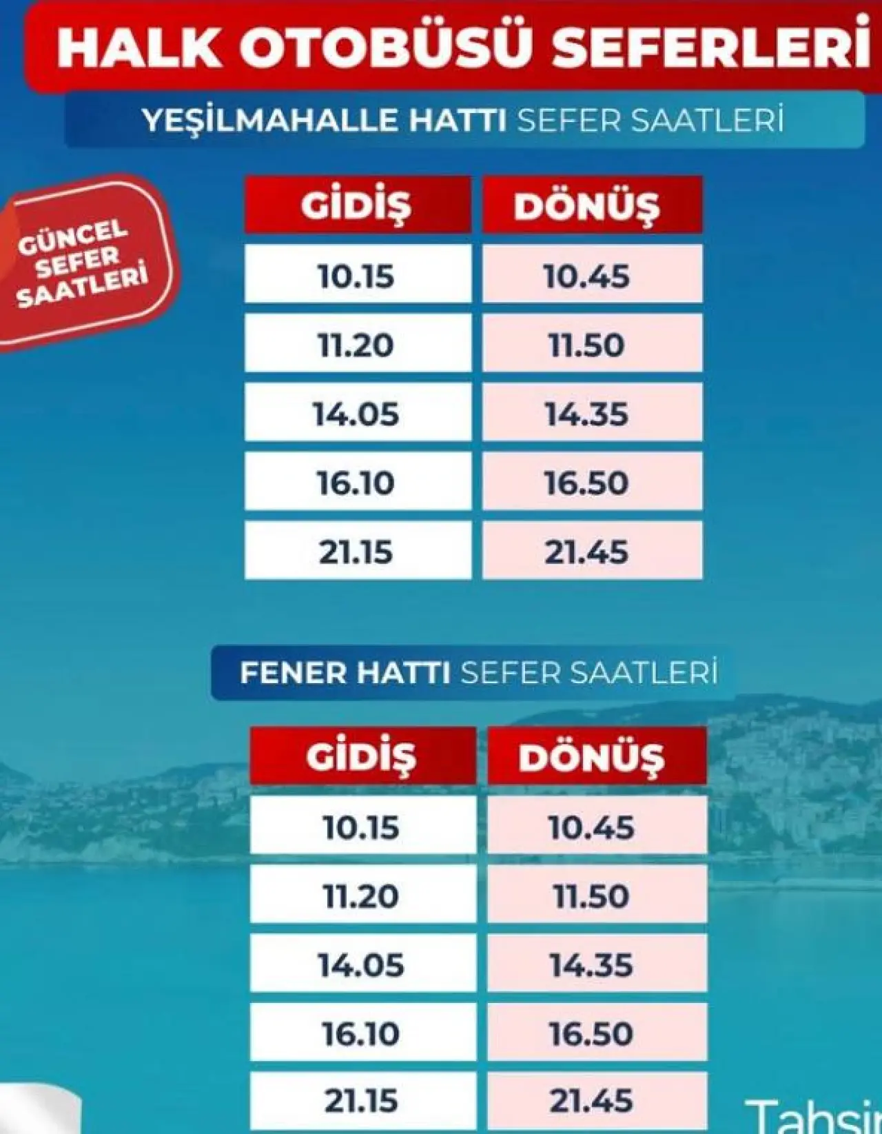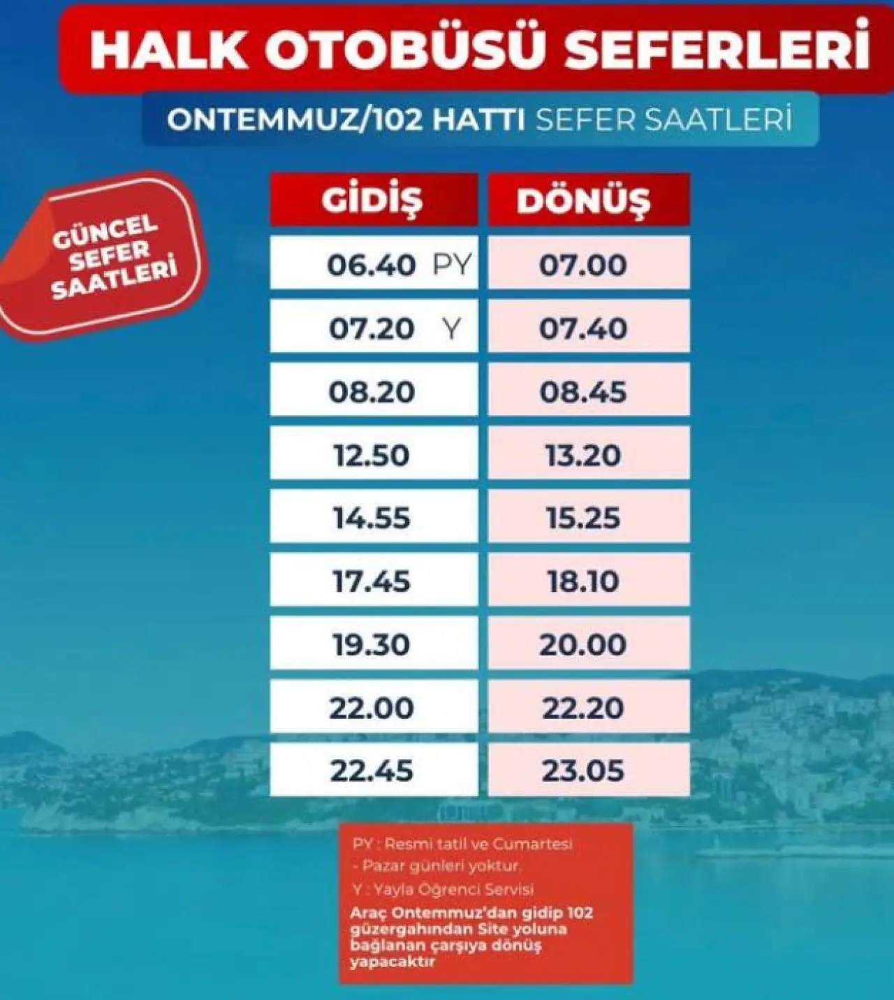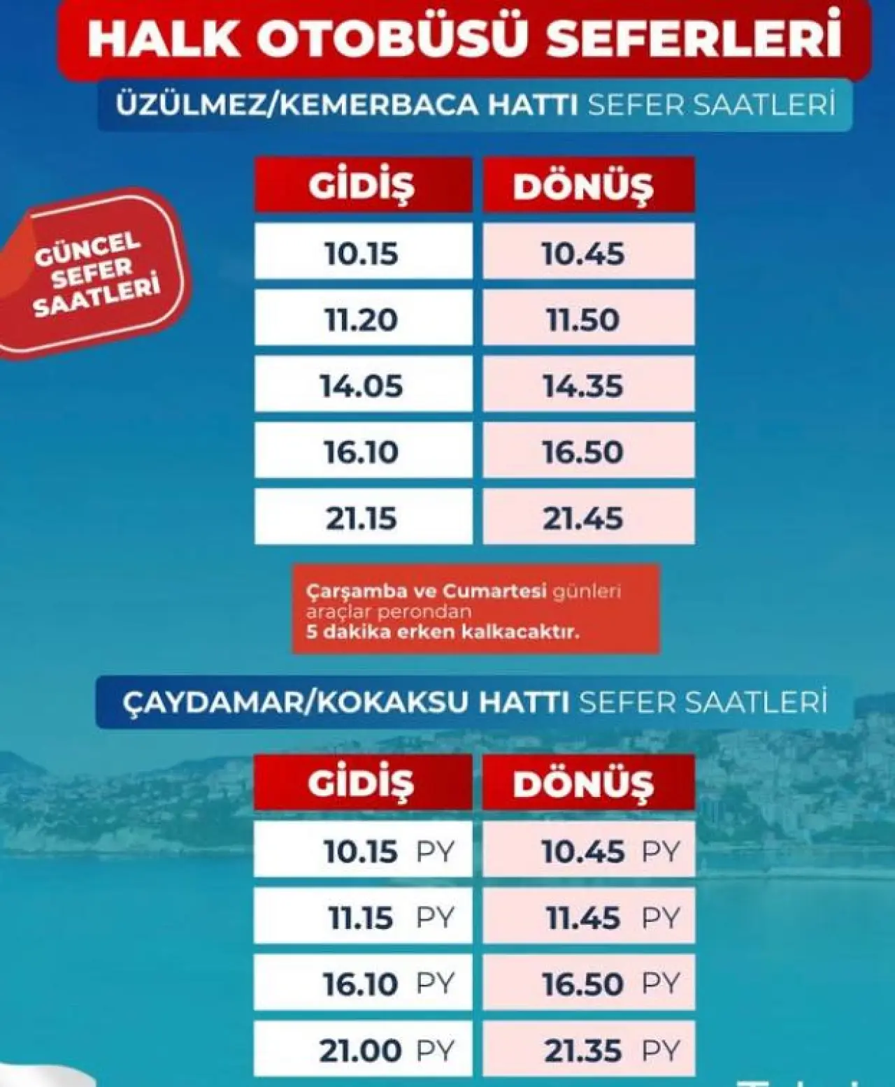 İşte Halk Otobüsü sefer saaatleri…
