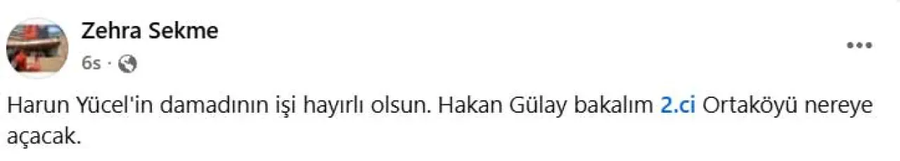 “Harun Yücel'in damadının işi hayırlı olsun. Hakan Gülay bakalım 2. Ortaköy’ü nereye açacak?”