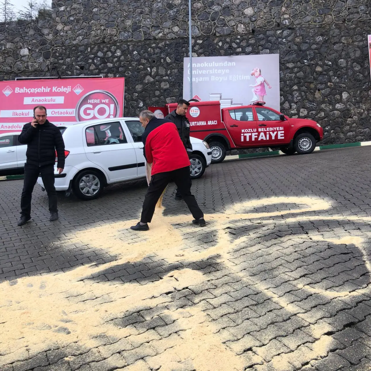 İhbar üzerine olay yerine Kozlu Belediyesi İtfaiye Müdürlüğü ekipleri sevk edildi. Ekipler, kayganlaşan zemini güvenli hale getirmek için yağ dökülen bölgeye talaş dökerek temizlik çalışması yaptı. Kısa sürede tamamlanan müdahale sonrası yol tekrar trafiğe açıldı.