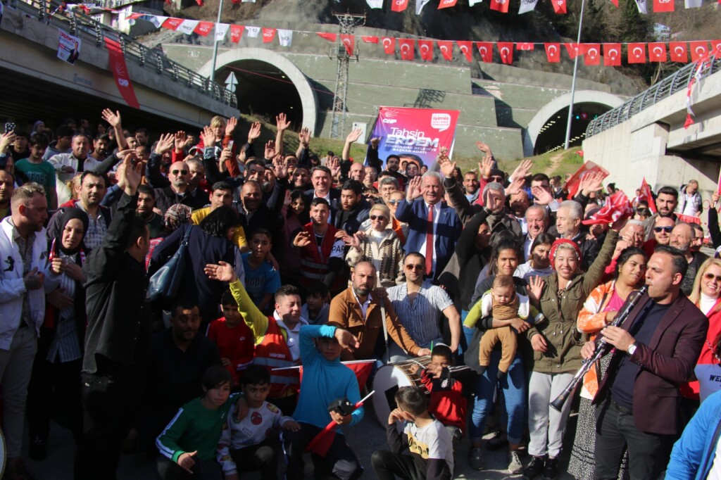 Yaklaşık 400 kişilik kalabalık tarafından coşkuyla karşılanan tahsin erdem burada vatandaşlara hitaben bir konuşma yaptı. Göreve geldiklerinde tasarrufa önce kendisinden başlayacağını ve makam arabası kullanmayacağını ifade eden Erdem, “yeni doğan çocuğun çocuk dizinden hayata gözlerini yuman vatandaşımıza kadar herkesin yanında olacağız. 19 mahallede görevlendireceğimiz sosyal asistanlarımız ihtiyaç sahibi insanlarımızın her zaman yanında olacak. Muhtarlarımızla birlikte gerçek ihtiyaç sahiplerine ulaşarak hizmeti vatandaşların ayağına getireceğiz. Üçüncü kata çıkamayan, derdini anlatacak kimse bulamayan insanlar bizim yönetimimizde hak ettiği değeri bulacak. kaybedeceklerini anlayınca tutuştular. Bol keseden vaat dağıtan, 5 yıl halkına sırtını dönenlere Zonguldak halkı 31 Mart’ta sandıkta gereken cevabını verecek” dedi.