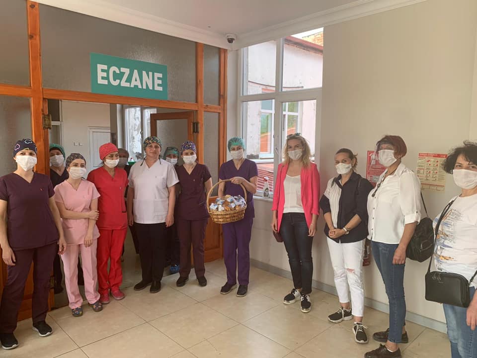 Atatürk Devlet Hastanesini ziyaret ederek çeşitli ikramlarda bulunan CHP Kadın kolları bu süreçte canları pahasına çalışan hemşireler için iyi ki varsınız dedi.