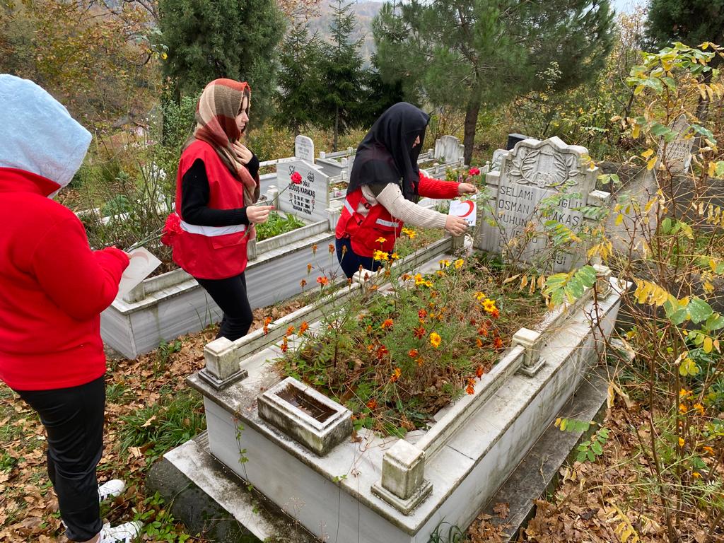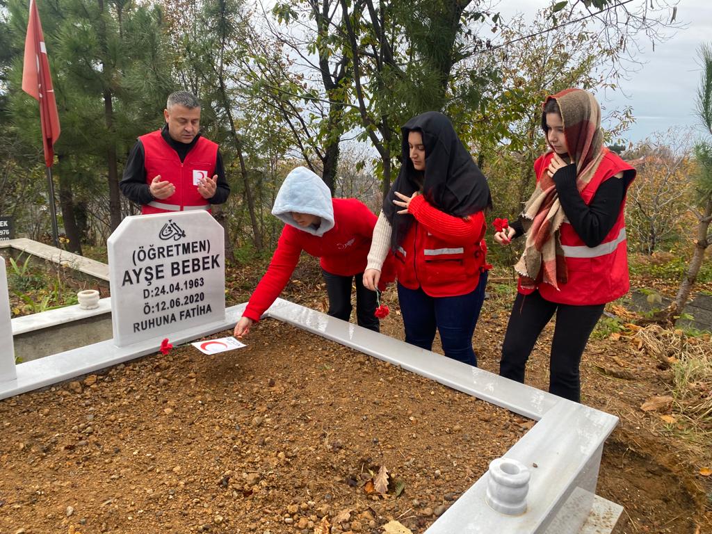 Türk Kızılay'ı Kilimli Şubesi Başkanı Hakan Çakır ve beraberindeki Kızılay gönüllüleri ile birlikte 24 Kasım Öğretmenler Günü münasebetiyle hayatını kaybetmiş öğretmenlere anlamlı ve bir o kadarda değerli ziyaret gerçekleştirdi.