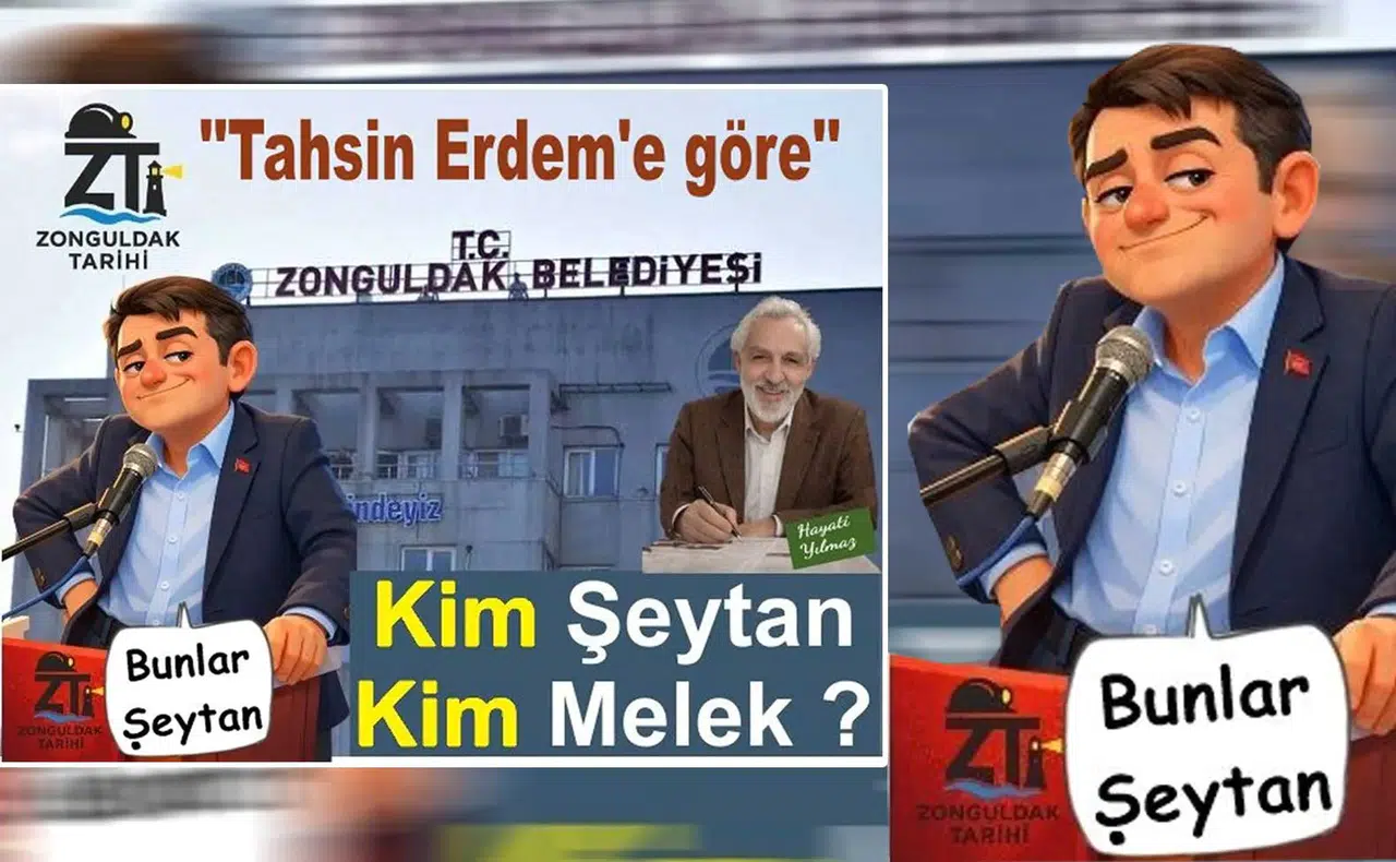 Sosyal medyadan eleştiri yazanlara da ‘’şeytan’’ diyor.. Bunların en başında bendeniz Hayati Yılmaz geliyor. Hiçbir çıkar gözetmeksizin, gönüllü olarak Zonguldak tarihini araştıran, konuları anlaşılır ve sade hale getirip halkın anlamasına yardımcı olan, sadece geçmişe değil ; geçmişin tecrübeleri ile bugünü , Zonguldak’ın çıkarına uygun eleştirel yaklaşımla konuları ele alan; tıpkı Zonguldak’ın ilk gazetecileri gibi , bugün yaşananları , yarınlara aktarmak için derinlik oluşturan , tek amacı ‘’Zonguldaklılık duygusunu aşılamak ’’olan ben , bir şeytanım ona göre.