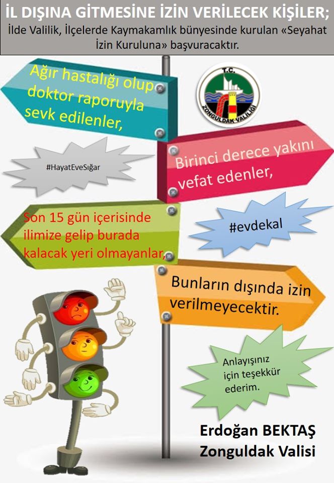 Zonguldak Valiliğinden yapılan açıklama ile il dışına gitmesine izin verilecek kişiler açıkladı. Açıklamada ,
