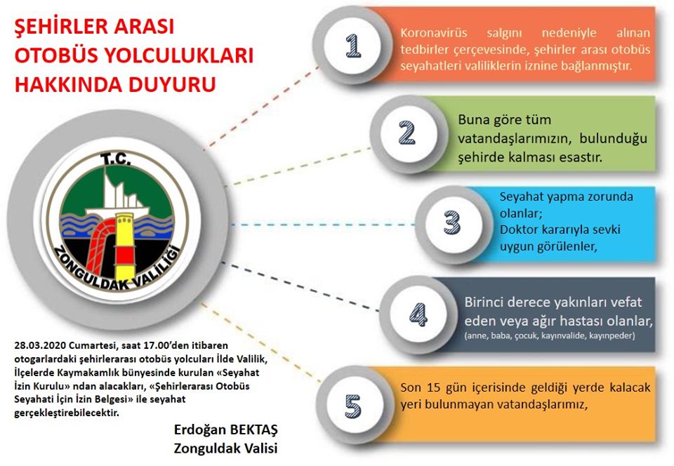 Cumhurbaşkanı Recep Tayyip Erdoğan, geçtiğimiz gün yaptığı açıklamasında şehir dışı seyahatlere kısıtlama getirdiklerini, otobüs seferlerinin sadece valilik izni ile yapılacağını duyurdu. Şehir dışına çıkacak olan vatandaşlar artık izin belgesi almak zorunda.