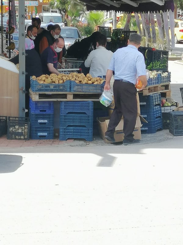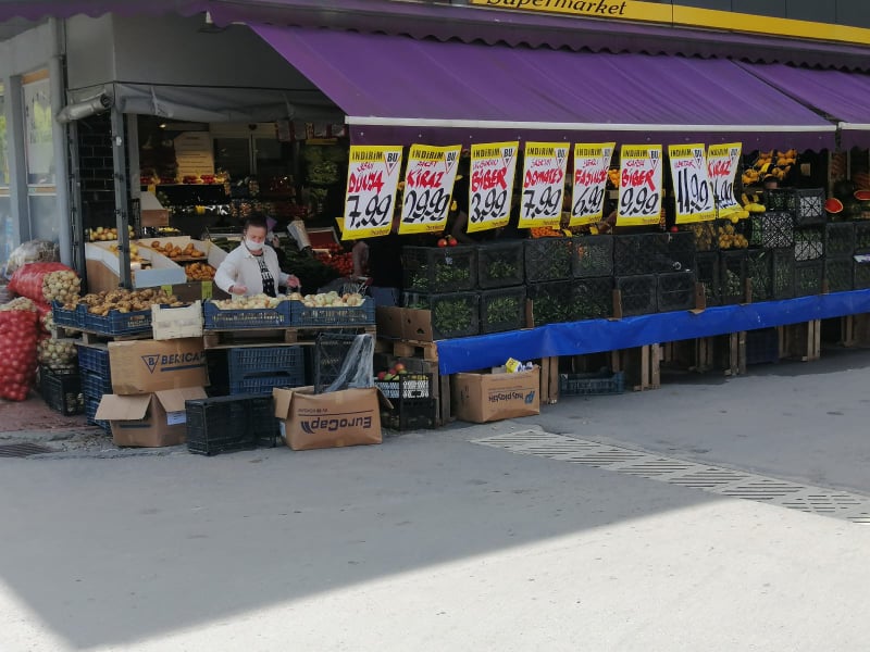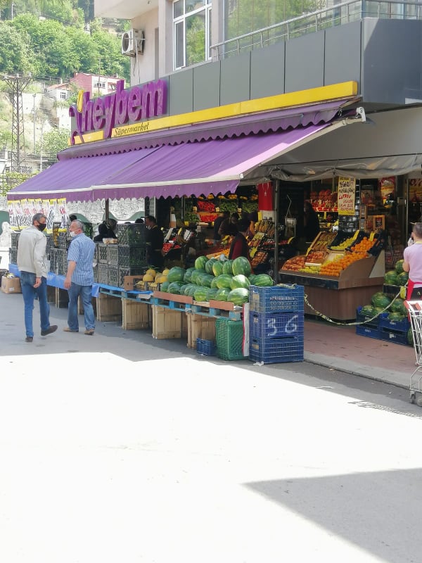 Sokağa çıkma yasağından bir gün önce vatandaşların alışveriş yapmak için marketleri sıkça kullanmaları üzerine Kozlu’da bulunan Heybem Market durumu fırsata çevirerek market önündeki kaldırımı tamamen kapatarak ve manav reyonunu büyüttü.