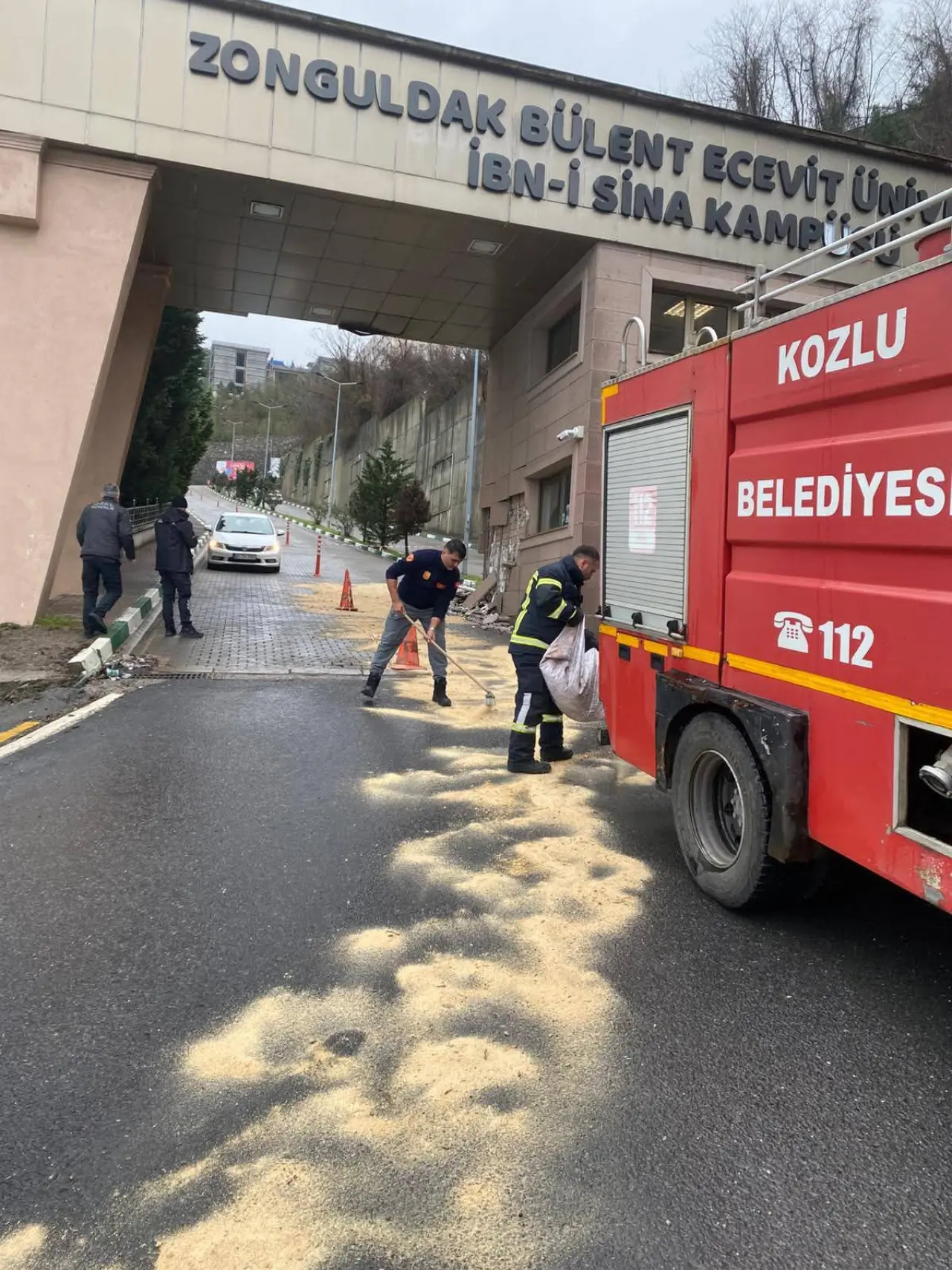 Çevredeki vatandaşların ihbarı üzerine olay yerine polis, sağlık ve Kozlu Belediyesi itfaiye ekipleri sevk edildi. Araç içerisinde sıkışan yaralılar, itfaiye ekiplerinin müdahalesiyle bulundukları yerden çıkarıldı.