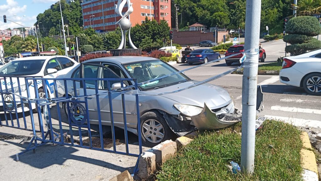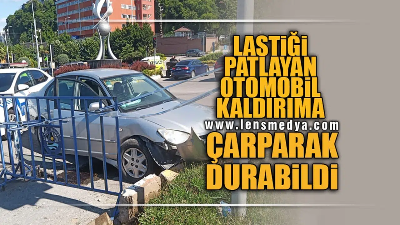 LASTİĞİ PATLAYAN OTOMOBİL KALDIRIMA ÇARPARAK DURABİLDİ!