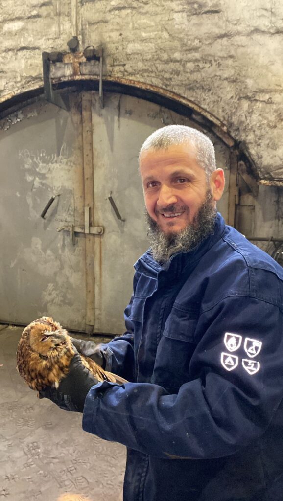 "Arkadaşlarımız fırında bir baykuşun sıkıştığını gördüler. Bize de haber verdiler. Baykuşun tek olduğunu gördük ama tek değilmiş. İki canlı bir ölü baykuş vardı. Arkadan bacayı açmaya çalıştık ama daha içeride olduklarını gördük. Bu sefer fırının içerisinden müdahale etmek durumunda kaldık. Dar alanda içeriye girdik. Biraz uğraştan sonra bir baykuş bulduk. Çıkarttık. Yanında bir ölü ve bir tane daha büyük baykuş bulduk. İkisini canlı birini ölü olarak çıkarttık. İtfaiye gelmişti zaten. Milli Parklar ekiplerine teslim ettik. Büyük ihtimalle hayvanlar susuz ve yemsiz kaldı. Veteriner hekime götürülecekti. Oradan da kendi doğasına salınacak. Fırını atölyede yapmış olduğumuz dökümlerin kalıplarını ısıtmak için kullanıyoruz. Bir can kurtarmanın keyfi bir başka. Sevindik. Türk Milleti olarak hayvanları severiz. Bir çocuk gibi evlat gibi sevindik."