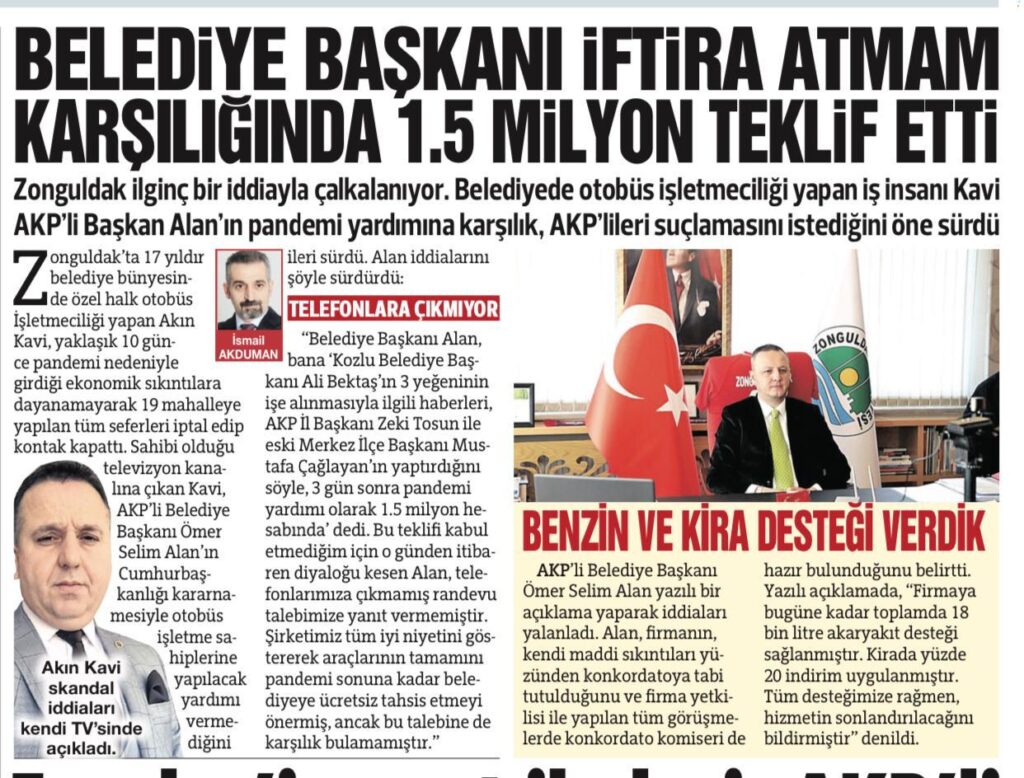 Zonguldak Belediye Başkanı Ömer Selim Alan, belediye meclisi toplantısında polemik yaşadığı CHP Grup Başkanvekili Atınç Kayınova'ya; "2019 seçimlerinde CHP adayının peşinde gezen arkadaşa WhatsApp gruplarında para dilenmekte, Benim yine hukuki süreç yaşadığım, CHP’nin alt çenesi olan basın mensuplarına bedava avukatlık yapanlar da şuan burada oturuyorlardır. Şu an burada bedava avukatlar da vardır! Bu Atınç Bey'e verilecek en iyi cevap" sözlerinden sonra Ömer Selim Alan’ın yakın zamanda kendi partisinden olan isimlere basın üzerinden neler yaptığı konuşuluyor.
