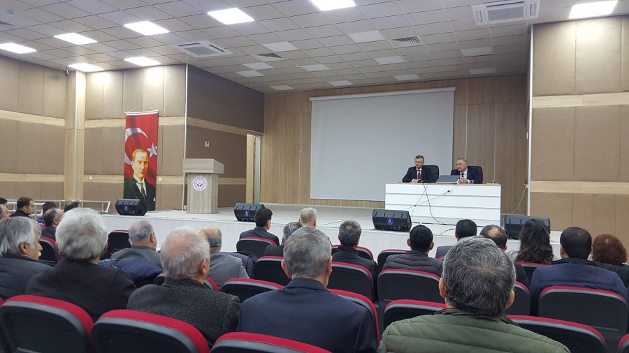 Vali Erdoğan Bektaş kamu hizmetlerinin etkin, verimli ve güvenli bir şekilde sunulması, olası sorunların hızlı bir şekilde yetkili makamlara iletilmesinin sağlanması amacıyla Valilik tarafından düzenlenen hizmet içi eğitim programında merkez ilçe, merkeze bağlı belde, mahalle ve köy muhtarları ile bir araya geldi.