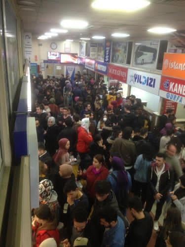3 hafta tatili ailelerinin yanında geçirmek isteyen öğrenciler ani gelişen olaylar sonucunda erkenden memleketlerine dönebilmek için terminal ve bilet satış noktalarına doluştu.