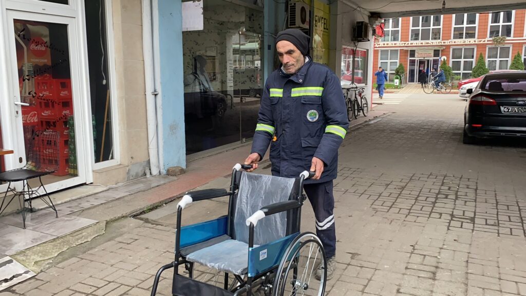 Zonguldak’ta 13 yıldır temizlik görevlisi olarak görev yapan 56 yaşındaki Abdurrahman Yılmaz, promosyon ücretiyle 1 engelli vatandaşa tekerlikli sandalye hediye etti.